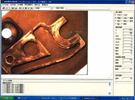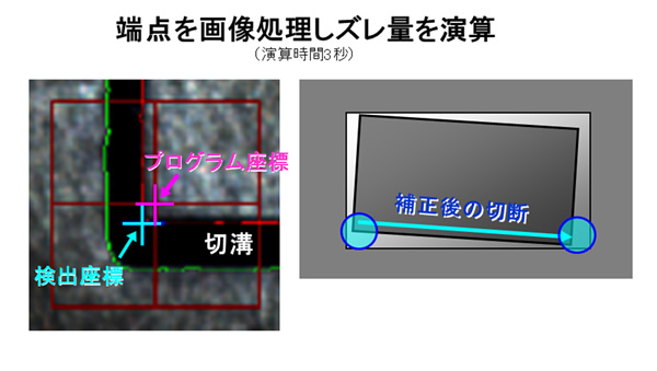 使用CCD相机拍摄图像,自动补正垂直切割后的工件偏差。