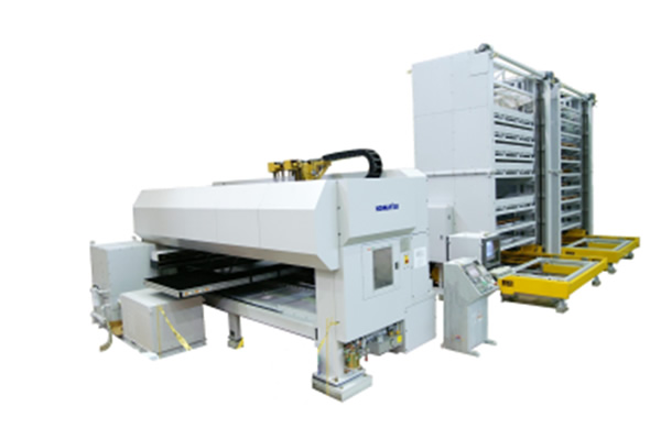 24小时无人运转概念的连发式冲压中心备有丰富的薄板供应和产品集成系统。从依样堆集薄板的标准系统到以产品总成为单位的分类系统,都有提供。