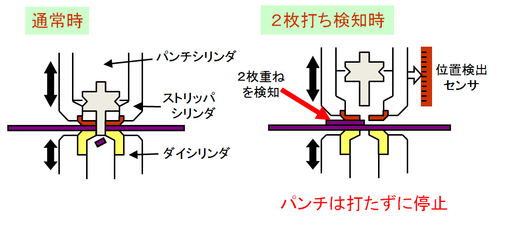 冲头、脱模器各自独立控制。因为用脱离器检测板厚以后再进入冲切工序,即使发生废料上跳,由于动作中止,可以防止模具损坏。
